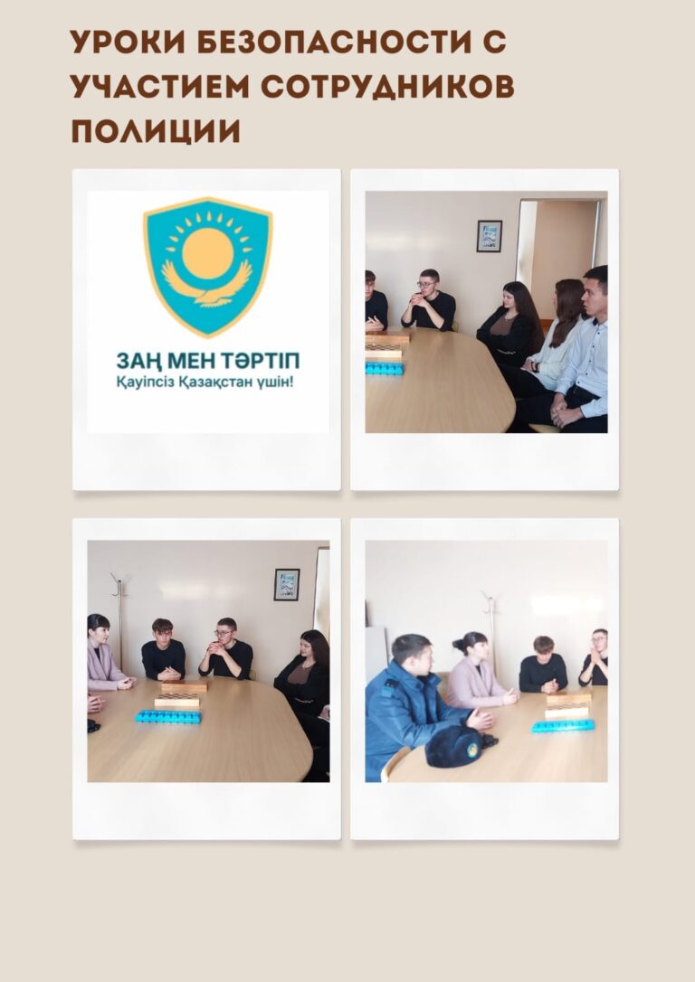 8 января 2026 года в рамках проведения мероприятий «Закон и порядок» и реализации Единой программы воспитания «Адал азамат» в колледже были проведены единые уроки безопасности с участием сотрудников полиции.Мероприятия прошли в общежитии колледжа. В ходе встреч обучающимся были разъяснены нормы административного и уголовного законодательства, касающиеся: