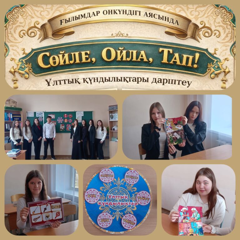 В рамках декады наук по дисциплине «Казахский язык и литература» в группе нБ-25 была проведена интеллектуальная игра «Сөйле, Ойла, Тап!» на тему «Ұлттық құндылықтарды дәріптеу». Обучающиеся активно участвовали в заданиях, связанных с национальными ценностями, казахским языком и культурой, проявили находчивость, отвечали на вопросы и показали хорошие знания.