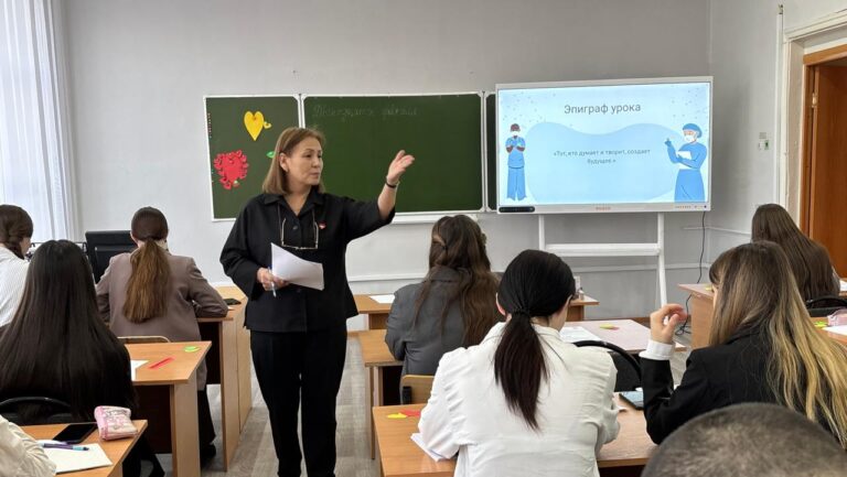 В ходе занятия, обучающиеся изучили правила постановки знаков препинания в простых предложениях с вводными словами и вставными конструкциями, а также обсудили ключевые направления развития современной медицины: внедрение высоких технологий, цифровизацию системы здравоохранения, приоритеты государственной политики Республики Казахстан в рамках Стратегии «Казахстан–2025» и вопросы социального медицинского страхования.