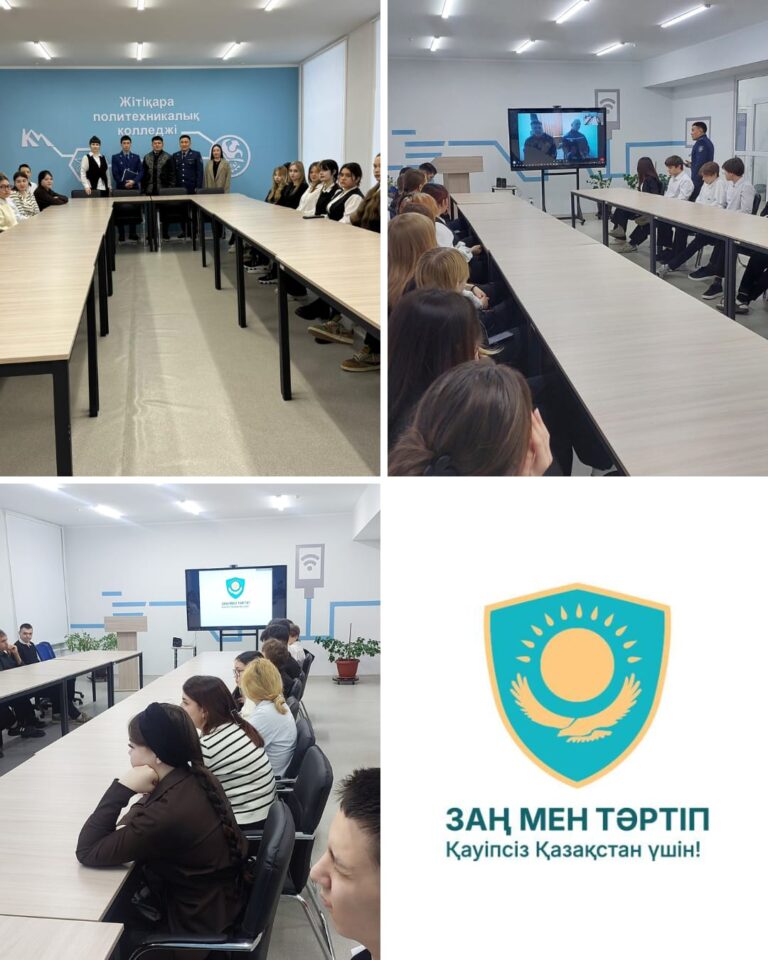 19 января 2026 года в рамках реализации идеологии «Закон и порядок» в колледже прошло мероприятие на тему «Профессии закона» с участием заместителя прокурора Житикаринского района Жунусова Ерболата Мурзакановича. В ходе встречи были затронуты вопросы прав и обязанностей, ответственности, а также профилактики правонарушений среди молодежи.